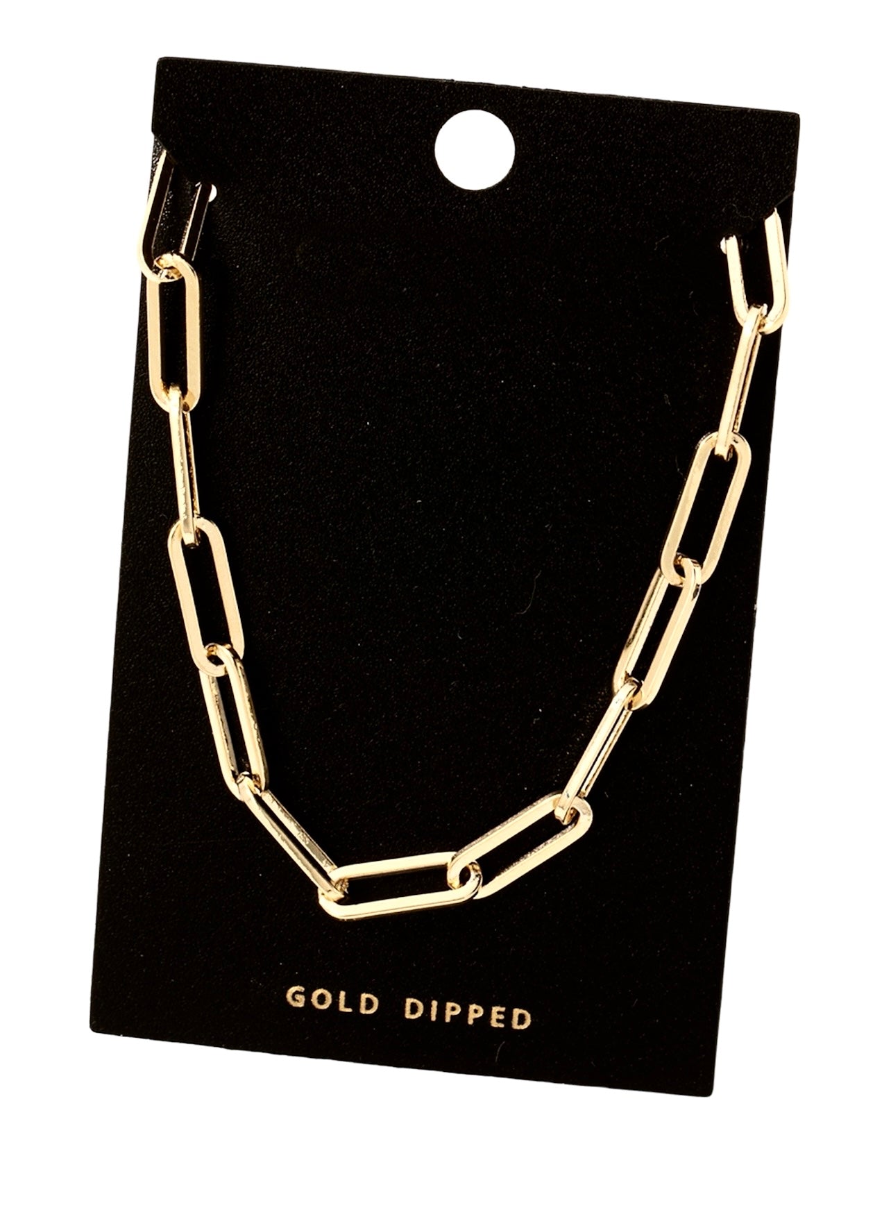 Enhance your look and add a touch of elegance with our Gold Linked Necklace. Made with 16+2 inches of gold dipped linked chains, this necklace is perfect for any occasion. Shine bright and make a statement with this stunning piece!